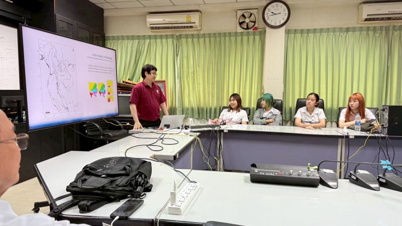 วันที่ 4 กันยายน 2568 นักศึกษาจากคณะวิศวกรรมศาสตร์ จุฬาลงกรณ์มหาวิทยาลัย จำนวน 27 คน เข้าศึกษาดูงานที่กองเฝ้าระวังแผ่นดินไหว โดยมี นายสัณฑวัฒน์ สุขรังษี ผู้อำนวยการส่วนวิจัยและพัฒนาแผ่นดินไหวและสึนามิ บรรยายความรู้ด้านแผ่นดินไหวและสึนามิ และการปฏิบัติงานของกองเฝ้าระวังแผ่นดินไหว