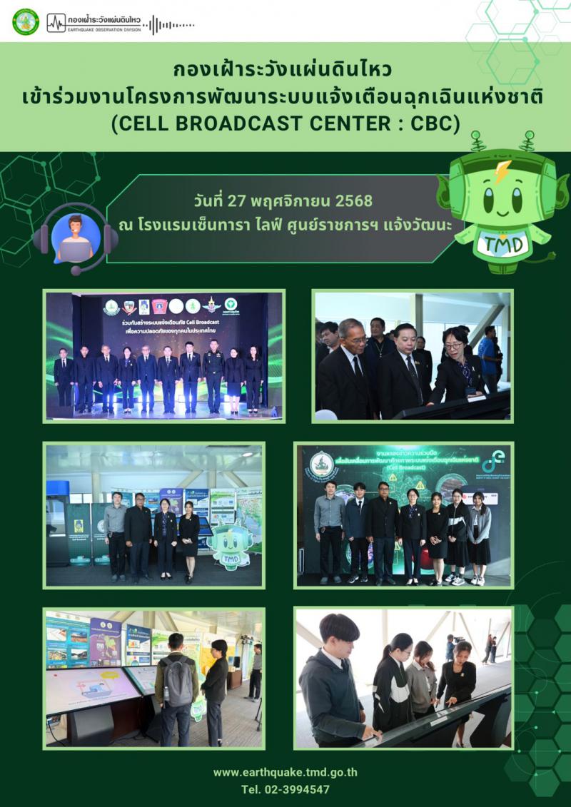 กองเฝ้าระวังแผ่นดินไหว เข้าร่วมงานโครงการพัฒนาระบบแจ้งเตือนฉุกเฉินแห่งชาติ (Cell Broadcast Center : CBC)