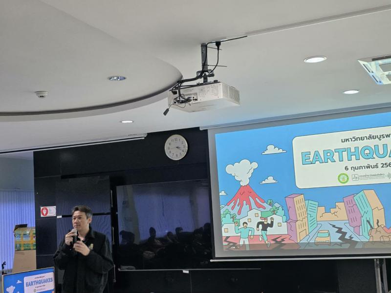 วันศุกร์ที่ 6 กุมภาพันธ์ 2569 เวลา 15.00-16.30น. นิสิตระดับปริญญาตรีชั้นปีที่3 จากมหาวิทยาลัยบูรพา จำนวน 38 คน เข้ารับฟังการบรรยายหัวข้อแผ่นดินไหวและสึนามิ บรรยายโดย นายบรรณศักดิ์ วรทอง นักอุตุนิยมวิทยาชำนาญการ ณ กองเฝ้าระวังแผ่นดินไหว กรมอุตุนิยมวิทยา